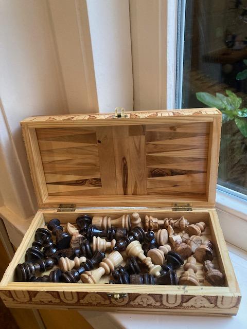 Handbeschilderde kinderkrukjes van accaciahout uit Thailand