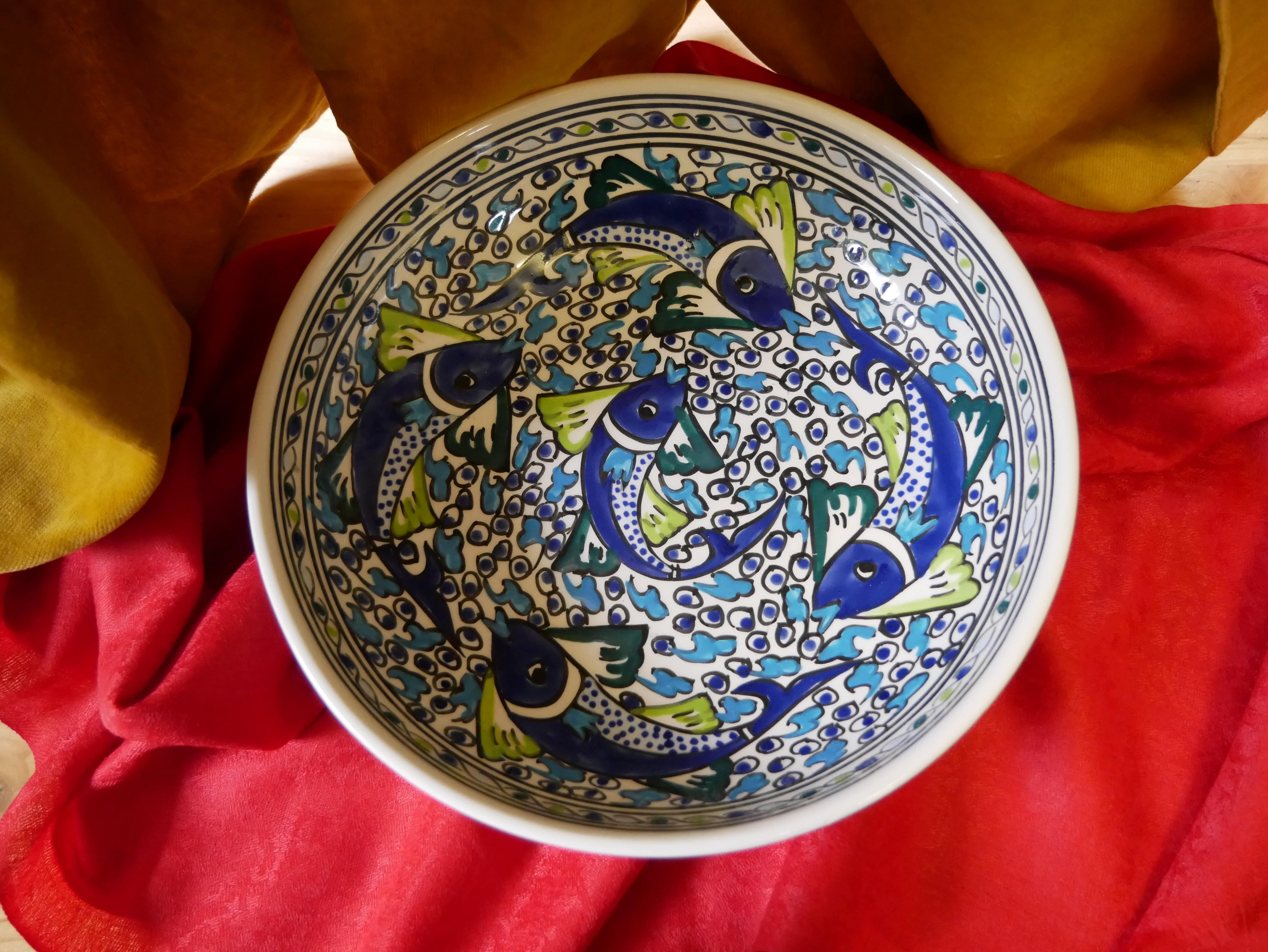 Hoe mooi dat uw kertsdiner of lekker gemaakte hapjes een fair tintje krijgen door het te presenteren op deze handbeschilderde schalen.