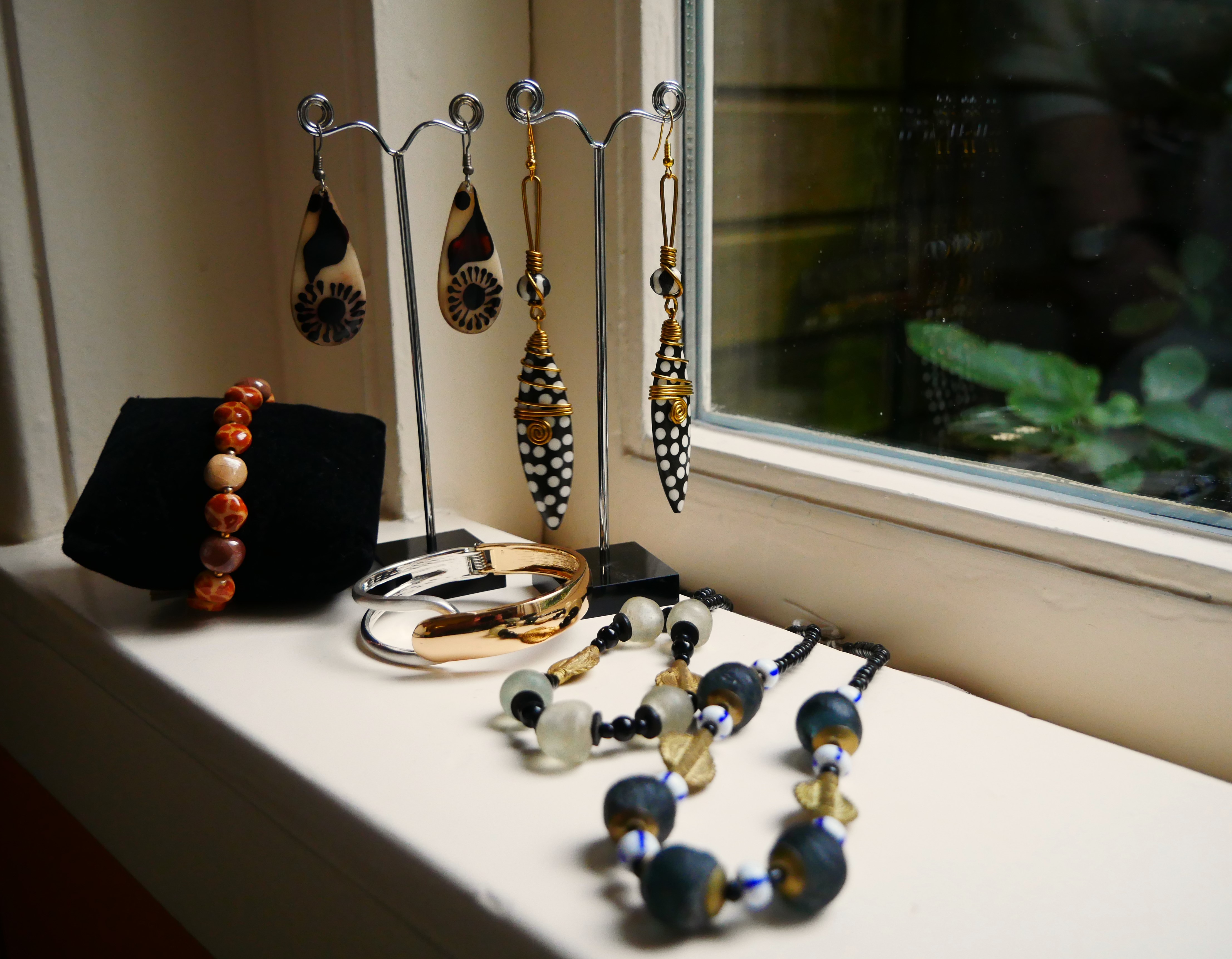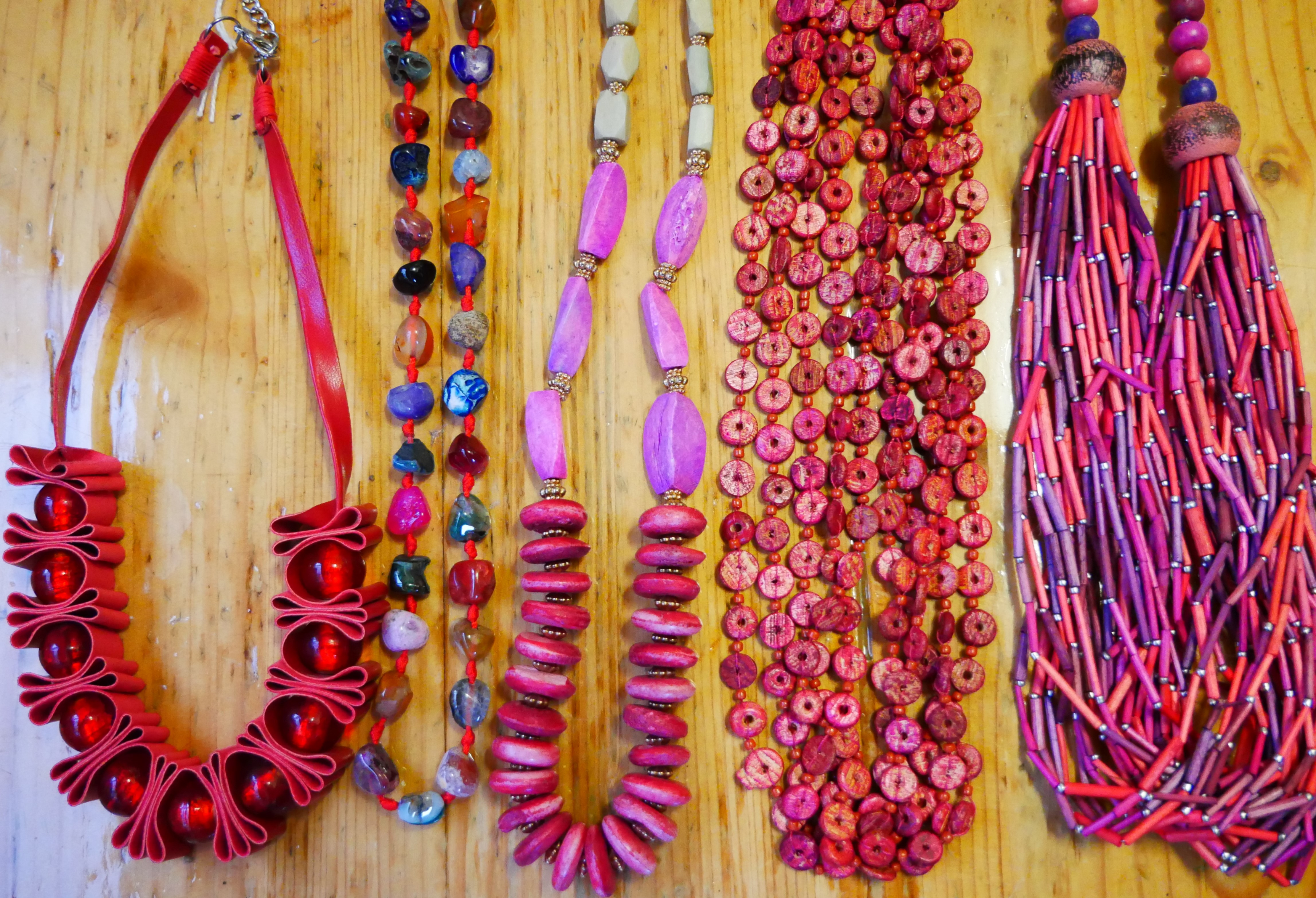 Uitgebreide collectie sieraden gemaakt van uiteenlopende materialen verassend met elkaar te combineren