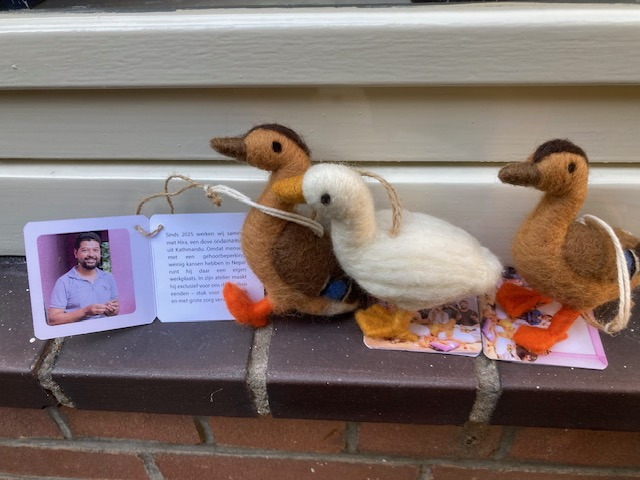 Van de producenten van Sjaal met een Verhaal, hebben wij, naast diverse handgemaakte sjaals, allerlei vilten handpoppen en mobiles..